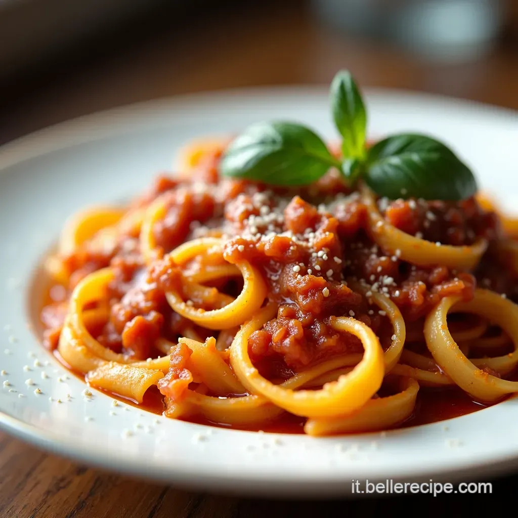 - Presentazione: Se volete fare bella figura , arrotolate le tagliatelle in un nido al centro del piatto. Sopra, abbondante ragù di salsiccia ricetta. Una spolverata di parmigiano e qualche fogliolina di basilico fresco per un tocco di colore. Fa sempre il suo effetto! (It always makes an impression!)