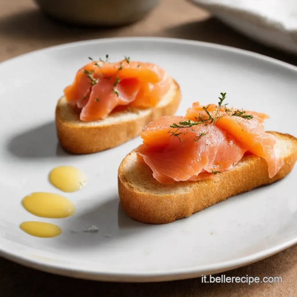 - Guarnisci con una fettina di salmone affumicato su ogni crostino.